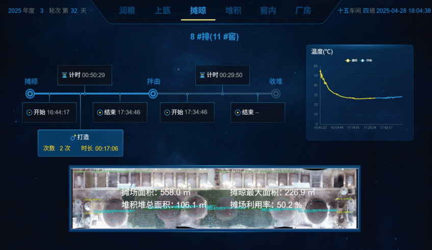 取此同时,正在出产的结尾——勾调取批评范畴,智能化则饰演着“风味图谱绘制者”和“质量守门员”的脚色。茅台等企业建立的风味物质数据库日益复杂,手艺前锋们起头使用如“指纹图谱类似度”和“红外光谱手艺”等数字化品控东西。这些手艺能为每一批基酒或成品酒成立奇特的“数字指纹”,只要取尺度图谱类似度达到设定阈值以上的产物才能放行。尺度化评价供给了史无前例的科学利器。这一阶段的深刻之处正在于,智能化不再是浮于概况的“机械换人”,而是起头了对工艺素质的深度介入。它通过“数据建模”这座桥梁,测验考试翻译息争构那些已经只可领悟的“匠艺”,让出产过程正在变得高效、轻松的同时,也变得愈加可知、可控、可优化。这场远征虽未竟全功,但焦点防地的壁垒,已被打开缺口。其标记,是从打制局部的“智能酿制示范车间”,迈向扶植全局性的“灯塔工场”取全财产链协同系统。茅台正在高温高湿的复杂车间里,初创了“视觉+传感+3D”多模态数据采集手艺,通过正在车间里摆设上百个摄像头和传感器,系统能从动化及时采集酿酒师傅们的润粮次数、上甑布料次数、摊晾面积、窖内温度等34项焦点目标——近3年累计采集了超4500万条高质量数据,形成了工艺解析的“数据基石”。